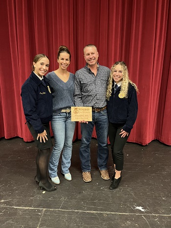 This year also, new officers for the 2025-2026 term elected two members to receive the Atlantic FFA Leadership Award, which is given in appreciation to those who have shown leadership through their years in FFA. The two members who received the award were Mia Kloewer and McKenna Sonntag. The officers elected the Drew & Kim Comes Family to receive the Honorary Chapter Farmer award. That award is given to people who have played a large role in helping the Atlantic FFA chapter and the activities they do.
