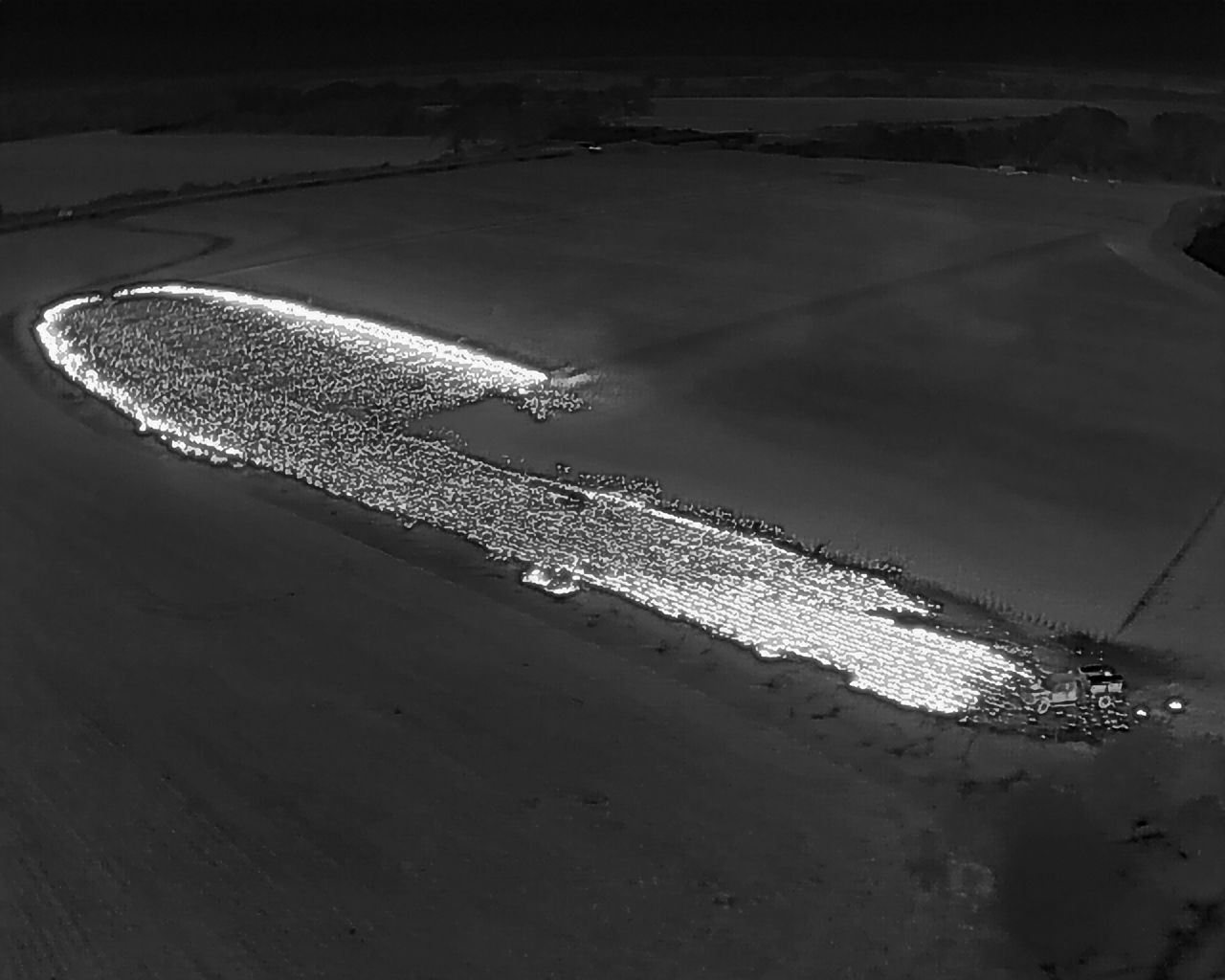 The first units to arrive on the scene found a moderately fast spreading field fire in a partially harvested cornfield, traveling north towards standing corn and an adjoining CRP field. The Montgomery County Emergency Management Agency deployed its drone (See aerial photos; black and white are infrared images) to provide direction from above to fire suppression units on scene and assisted with incident command while crews were actively fighting the field fire.White=Hot