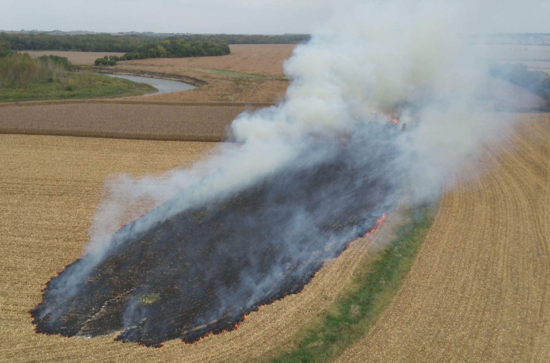 Additional units arrived on scene, and the fire was quickly contained to the field of origin consuming approximately 4 acres of harvested and unharvested corn. Crews remained on scene for approximately 1 hour to ensure all hotspots were extinguished due to dry and windy conditions. No injuries reported.