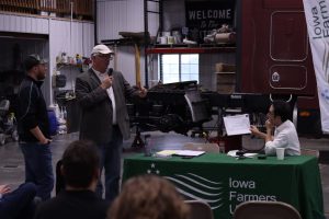 Part of the problem, for repairs and for nearly every aspect related to farming, is that repair shops, dealers, grain elevators, meat lockers and other commodities are fewer and further between. Farmers gave countless examples Saturday of how this spread has hurt not just their ag operations, but their rural communities as well. Josh Manske, an IFU board member and farmer, said farmers no longer shop around for the best fertilizer price, instead they shop “for transportation.” Jerry Rosman, a farmer and truck driver, said he sees the same issue in the field, but also on the highway. “The dynamics of what it is might be a little different, but it’s just — as things get tighter at the top, at the bottom they just start disappearing,” Rosman said. “Pull through a little town and you can just see the decline.”