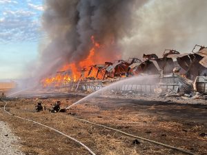 (Radio Iowa) – Smoke from a fire at a chicken farm in southwest Iowa’s Taylor County could be seen for up to 30 miles last (Tuesday) night. The Taylor County Sheriff’s Office said on social media the fire had been brought under control thanks to at least two-dozen fire departments and their more than 100 personnel, who responded to the fire near Clearfield (1641 Yellowstone Ave.) at an egg production company called Daybreak Foods. Responding departments included Creston, Clearfield, Bedford, Blockton, Diagonal, Mount Ayr, Lenox, Corning, Prescott, Afton, Murray, New Market, Gravity, Woodburn, Villisca, Sharpsburg, Greenfield, Massena, Stanton, Clarinda, Union Township, and Worth County, with the last two coming from the Grant City, Missouri area.