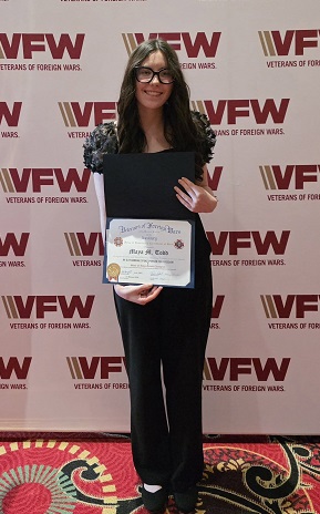 (Avoca, IA) – Officials with the AHSTW School District have announced two district students were in Des Moines this past weekend for VFW essay/writing competitions. Maya Todd was a top 3 finalist in the State for the VFW Voice of Democracy audio essay scholarship contest. She came away with a 1st Place award in the State for category of competition.