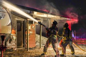 (Union County) – The Creston Fire Department responded to a detached garage fire on Patt Street, at around 8:45 p.m., Saturday. Authorities say in addition to the garage fire, the roof of an adjacent travel trailer caught fire. The first firefighters on the scene requested a second page at 8:51 p.m. for more resources. A total of 10 firefighters responded with four trucks. Following the suppression of the presenting fire, firefighters began the overhaul process. They used thermal imagers to detect hot spots and pike poles to remove exterior siding, eaves, fascia, and interior ceiling materials, allowing them to extinguish any smoldering wood and insulation. The cause of the fire is under investigation.