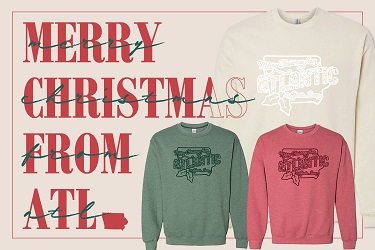 (Atlantic, IA) – Welcoming the season with hometown pride and holiday sparkle, the Atlantic Area Chamber of Commerce is excited to announce the launch of Christmas in Atlantic apparel! Limited-edition crew-neck sweatshirts celebrating the community known as one of the best Christmas towns in Iowa. The new Gildan Unisex Heavy Blend Crewneck Sweatshirts, starting at $30, are available in three classic holiday colors red, green, and sand, the cozy sweatshirts feature a cheerful design reading “Merry Christmas from Atlantic, Iowa” alongside a charming outline of Iowa adorned with holly. The look is festive, nostalgic, and full of small-town pride. The special-edition sweatshirts will be available now through November 30th, with a tentative ship date of December 10th. Customers may select local pickup at the Atlantic Area Chamber of Commerce or ship directly to family and friends, making it easy to send “a Christmas hug from home” to loved ones near and far.