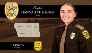 In her bio, the State Patrol says Trooper Thygesen has always been driven by a deep commitment to helping others. Raised in a family of first responders, she learned early on the importance of community service and the impact it can have. Trooper Thygesen’s belief in helping others was strengthened through volunteer work, such as aiding disaster recovery efforts in Greenfield, IA. These experiences reinforced her dedication to public service, inspiring her to pursue a career where she can make a difference every day.