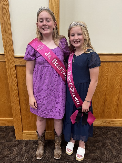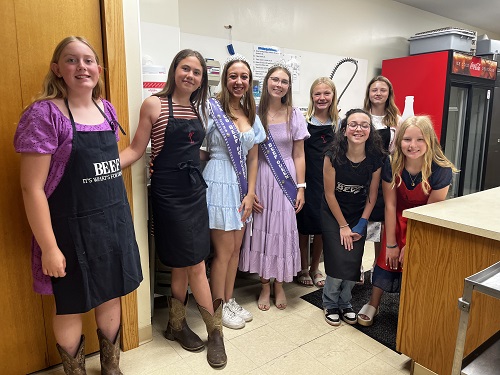 (Submitted to KJAN; Lewis, IA) – Naomi Masker, Jr. Beef Princess Eden Ohms, Princess Addie Masker, Queen Jacquelyn Freund, Jr. Beef Queen Macy Freund, and Ambassador Hayden Kleen, served samples of beef taco salad, meat sticks and fruit snacks at the Quirky Parade during the Lewis Days Celebration in Lewis, Sat., June 14th. Passerby’s were given coloring books and recipe cards. (Photos submitted)