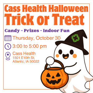 Atlantic, IA — Cass Health invites the public to attend a Halloween Trick or Treat event on Thursday, October 30, from 3:00 to 5:00 PM.