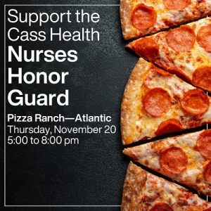 (Atlantic, IA) – Officials at Cass Health, in Atlantic, says the Cass Health Nurses Honor Guard will hold a fundraising event at Pizza Ranch in Atlantic on Thursday, November 20, from 5- to 8-pm. Portions of every dine-in or take-out purchase will directly support the Nurses Honor Guard’s mission to honor the dedicated nurses who devoted their lives to caring for others. Proceeds from the event will be used to purchase meaningful gifts for families such as Florence Nightingale lamps, flowers, and blankets. Those items are presented during funeral services to the families of nurses who have passed, as well as during living tributes for those still with us, celebrating their remarkable careers.