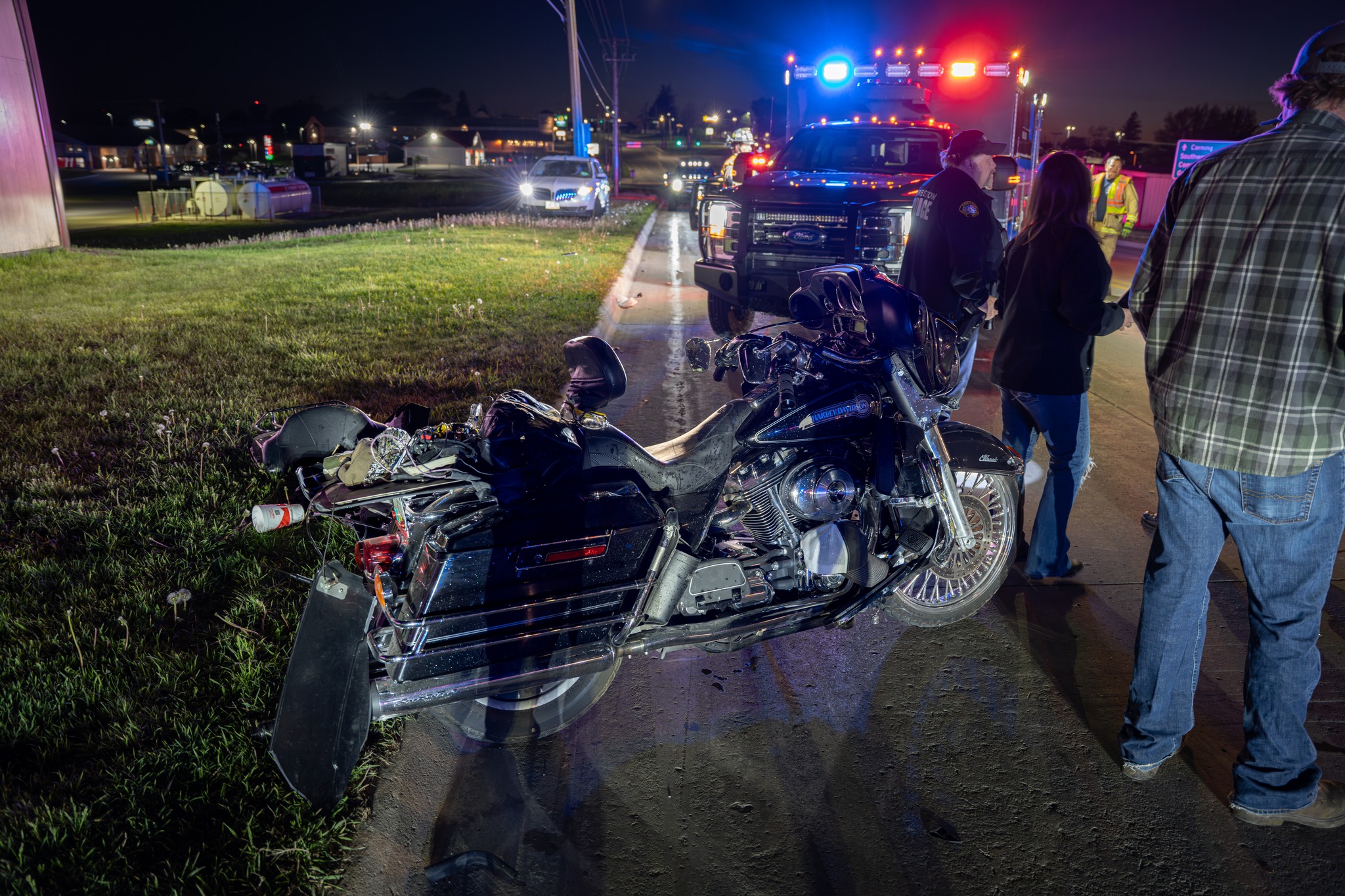 Responding medical personnel and law enforcement found a motorcycle down on the roadway. While EMS crews cared for the motorcyclist, the highway was closed to allow law enforcement to investigate and let the Creston FD clean up debris.