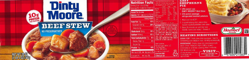 Hormel Foods Corporation, a Tucker, Ga. establishment, is recalling approximately 256,185 pounds of canned beef stew product that may be contaminated with foreign material, specifically wood, the U.S. Department of Agriculture’s Food Safety and Inspection Service (FSIS) announced today.