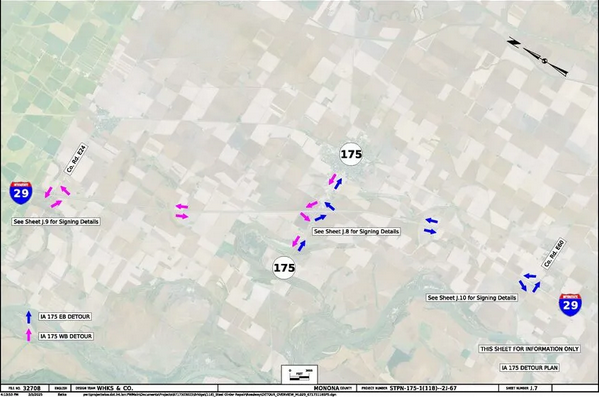 ONAWA, Iowa – March 5, 2026 – Crews will be closing the Iowa 175 bridge over Interstate 29 (Exit 112) west of Onawa on Monday, March 16, until Monday, March 30, weather permitting, so work can continue on the bridge maintenance project, according to the Iowa Department of Transportation’s Sioux City construction office.
