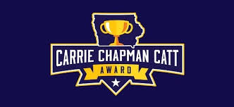 Established in 2019, the Carrie Chapman Catt Award was created by Secretary Pate to encourage voter registration in Iowa high schools. The prestigious Carrie Chapman Catt Award goes to Iowa schools that register at least 90 percent of their eligible students to vote, with schools also earning recognition for registered 70 percent and 50 percent of eligible students. Studies show that students who report being encouraged to vote or taught how to register to vote in high school are more likely to vote and be more invested in elections throughout their lifetimes.