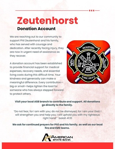 The social media post from the City of Hospers said “We are all so thankful for these men and women from our town and all area volunteer Fire & EMS departments. Every time their pagers go off, they leave their families and loved ones to go and try to save someone else’s life or home. This Thanksgiving, may we all pray for their safety and recovery—both physical and mental. May we remember to appreciate all that they give.”