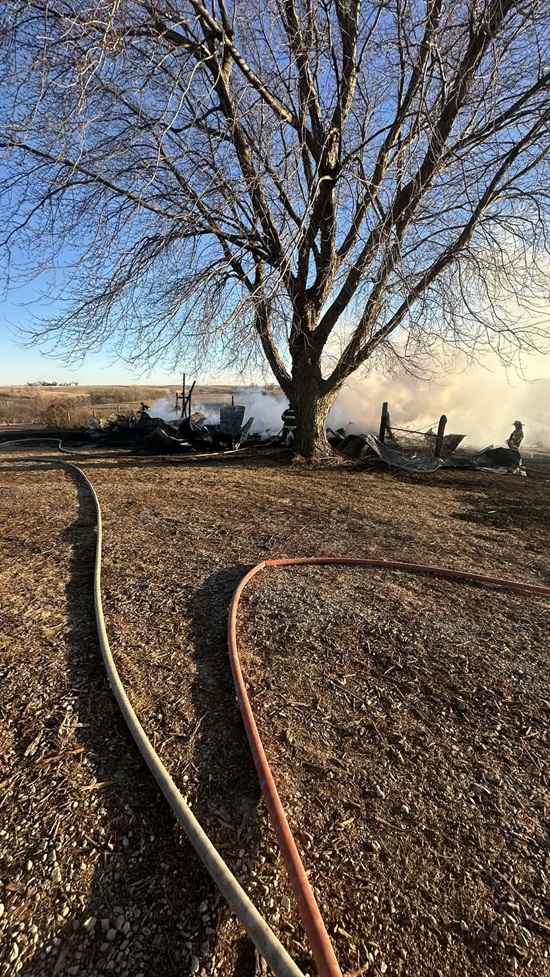 (Rural Lewis, IA) – A controlled burn that got out of control resulted in the destruction of an outbuilding/medium-size barn east of Lewis, Friday afternoon. The blaze near 63748 600th Street was reported by a motorist at around 4:15-p.m. By the time firefighters arrived at around 4:30-p.m., the first personnel on scene reported the building was fully engulfed in flames and had collapsed.