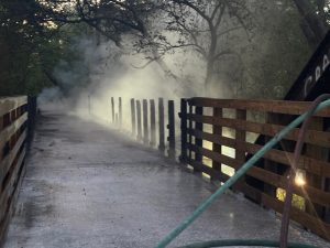 Curt Cable, director of the Dallas County Conservation Board, said the fire happened on a “vital stretch to the Raccoon River Valley Trail,” a 72-mile loop within 89 miles of paved trails connecting 14 central Iowa towns. The bridge, known as the “Lighted Bridge,” was closed several months last year for renovations. The $500,000 project included upgrades to the deck and railings, along with new pavement approaching the bridge.
