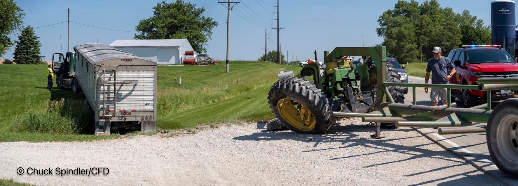 As the semi was attempting to overtake the tractor, it struck the back tire of the machine, which caused the gooseneck portion of the hay trailer to come off, and strike Buxton on his back. Buxton was transported by EMS Ambulance to the hospital in Creston.