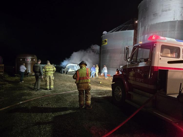(Villisca, Iowa)– Three area fire departments responded to a reported skidsteer explosion and fire early this (Tuesday) morning, near Villisca. According to Red Oak Fire Chief John Bruce, crews from Red Oak, Villisca and Grant, were called to 1601 T Avenue at around 2:45-a.m. Upon arrival, firefighters found a skidsteer fully engulfed in flames that the homeowner had been able to pull away from a grain bin prior to fire department arrival.