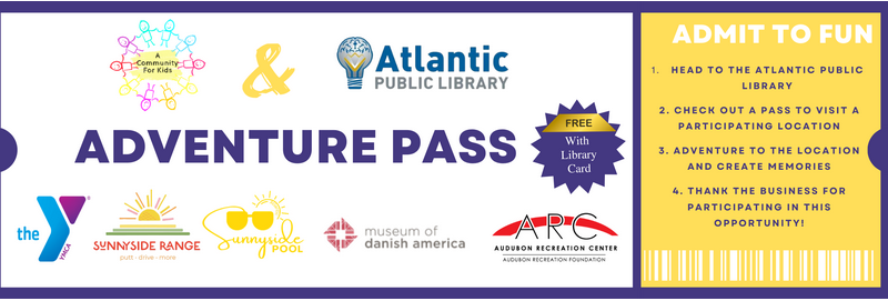 Chelsie Rush, Founder of C4K, says “A Community for Kids is grateful for the Museum of Danish America’s commitment to supporting families and enriching the cultural life of the community. The Adventure Passes have been well received by our patrons that have used them, this is an exciting new partnership that will be a great option for all ages of users.”Adventure Passes are available on a first-come, first-served basis through the Atlantic Public Library. Any adult with a library card in good standing may check out a pass, and families will have seven days to use it after checkout. For more information about Adventure Passes and participating locations, visit acommunityforkids.com or stop by the Atlantic Public Library.