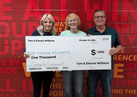 (Atlantic, Iowa) – Officials with Vision Atlantic report Tom and Dianna Williams, of Atlantic, recently made a generous $1,000 donation to support Vision Atlantic’s transformative community development project. Having called Atlantic home for more than 45 years, the Williams family says they have seen firsthand how collaboration and community spirit can shape a thriving hometown. Their commitment – Vision Atlantic says – reflects both a love for this community and a shared belief in investing in its future growth and vitality.