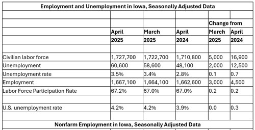(Radio Iowa) – The state unemployment rate rose one tenth-of-a-percent to three-point-five percent in April. Iowa Workforce Development director Beth Townsend says that’s because more people are looking for work. “We had five-thousand Iowans come back into the workforce, that’s the really good sign. Yeah, the unemployment rate ticked up a tenth of a point, but I would take that every day if I could get five-thousand more people coming into the workforce each month,” Townsend says.
