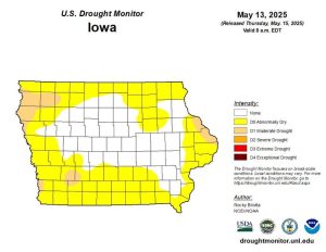Conditions remain basically the same in northwest Iowa. Conditions are much better through a large section of central, north central and parts of eastern Iowa, where the latest Drought Monitor Report shows an absence of drought.