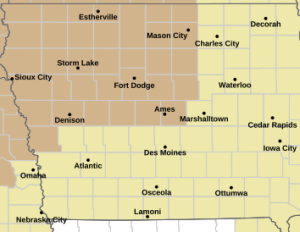 (Radio Iowa) – Strong thunderstorms rumbled across parts of northern Iowa this (Thursday) morning, and a wide area of the state is under a Wind Advisory today. The Advisory covers 34 counties in northwest, west-central and north-central Iowa from noon until 8 o’clock tonight. In the KJAN listening area, Harrison, Monona, Sac, Crawford and Carroll Counties are included in the Wind Advisory.
