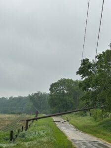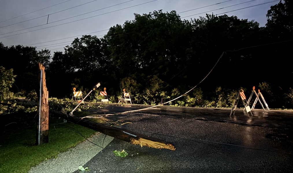 While much of Iowa just had showers on Tuesday, the storms gained strength as they approached the Quad Cities. “We just had very strong winds that went through the area. In some cases, they just felled trees and the trees took down our power poles and took down the lines,” Greenwood says. “We have counted at least 40 poles that are down and that count is still growing.” Given the extent of the damage and outages, the utility dispatched crews from Des Moines, Fort Dodge, Waterloo and Iowa City to join crews from the Davenport area in the response. “We had more than 75 line workers out in the field overnight, along with more than 70 tree crews,” Greenwood says. “In some cases, we needed those tree crews to clear areas to enable our line crews to do their work safely.”