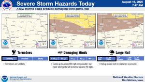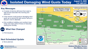 Strong storms possible over the northern half of Iowa today (8/15)